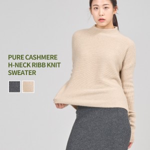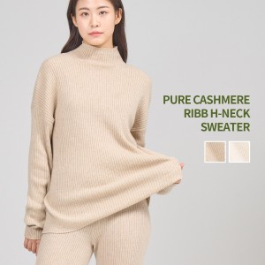 PURE CASHMERE RIBB HIGH-NECK SWEATER