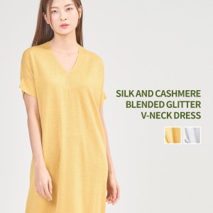 SILK AND CASHMERE BLENDED GLITTER V-NECK DRESS-1