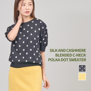 SILK AND CASHMERE BLEND POLKA DOT CNECK
