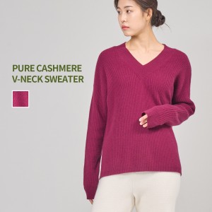 PURE CASHMERE WHOLE GARMENT V-NECK