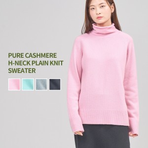 PURE CASHMERE HI-NECK PLAIN KNIT SWEATER
