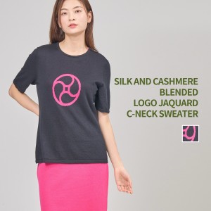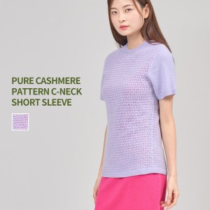 PURE CASHMERE SHORT SLEEVE PATTERNED KNIT CNECK